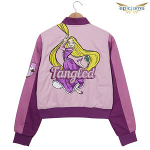 Disney Tangled Rapunzel Women's Cropped Pink Purple Moto Jacket Size XL New