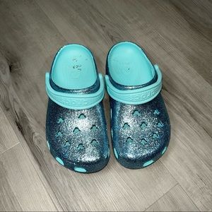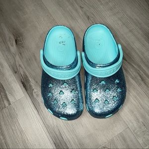 Disney Teal Blue glitter crocs w Mickey design