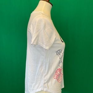 This tee is extra cute because it is scalloped on the sides for a cute, flirty fit. Kind of like a baseball tee. Cat decals are bright and in great condition. Authentic Disney apparel from Disney Springs in Florida. Comfortable enough to wear to bed. Cute enough to wear to the amusement park! You will LOVE! (Fits is a small M)