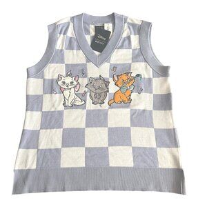 Disney The Aristocats Kittens Checkered Women's Sweater Vest Size Medium