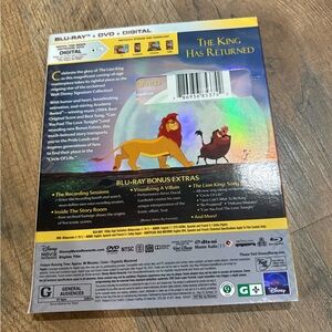Experience the magic of Disney's The Lion King. Includes Blu-ray, DVD, and Digital formats. Enjoy bonus features and stunning visuals. The circle of life edition. Opened but in excellent used condition.