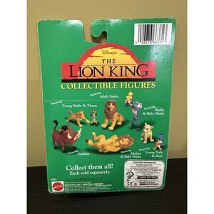 A classic Disney collectible: Pumbaa, the lovable warthog from The Lion King. This collectible figure is sealed on its original card from 1994. Part of Mattel's line of Lion King collectible figures, the card features colorful artwork with other characters from the movie, making it a great piece for any Disney enthusiast.