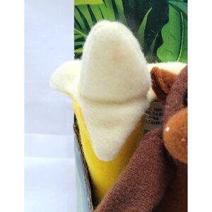 Item is New Old Stock (NOS) and still attached to its original box. Box shows slight wear and bending from storage. Banana has a spot on the front. There may be some lint still on the puppet.