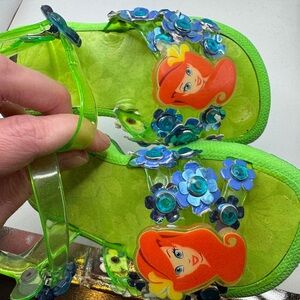 Disney The Little Mermaid Ariel Green Toddler 7/8 Jelly Sandals w Floral Accents