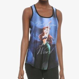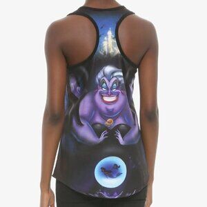Racerback tank top from Disney's The Little Mermaid with Ariel sublimation print design on the front and an Ursula sublimation print of her tentacles on the back.