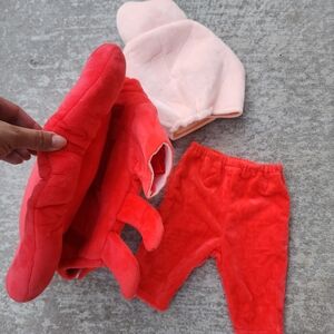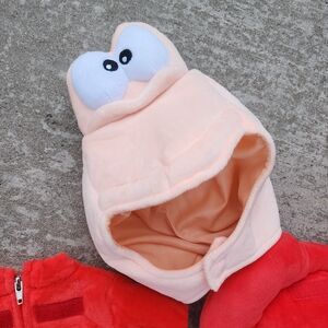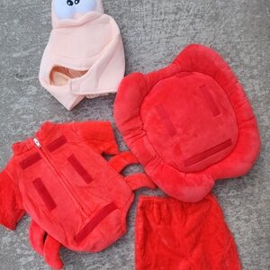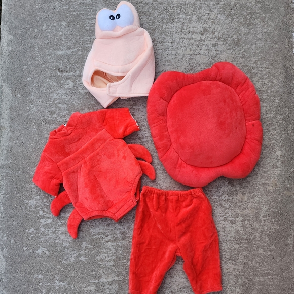 Four piece Sebastian crab costume in good pre-owned condition. Back of crab shell has tiny marking-see pictures.