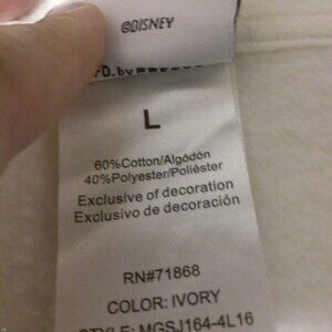 This is a Disney Brand cream-colored zip-up hoodie featuring "The Nightmare Before Christmas" theme.