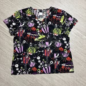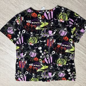 Disney The Nightmare Before Christmas Scrub Top Womens L Black Jack Halloween