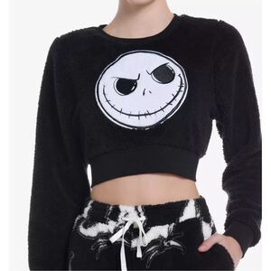 Disney The Nightmare Before Christmas Jack & Zero Sherpa Lounge Cropped Top Blac