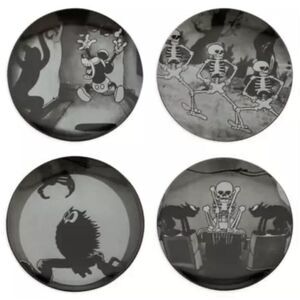 Disney The Skeleton Dance and The Haunted House Scary Ceramic Plate Set Of 4-NIB