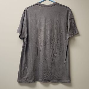 Pre-owned, some discolorationat collar and throughout the shirt ... see pics. Also, stretched out more on one side .. see pic.