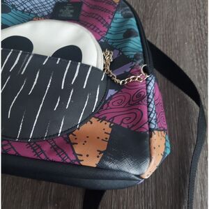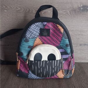 This Disney The Nightmare Before Christmas 11" Mini Backpack Multi-Color features an all over print design with a chained Jack Skellington pocket pouch that can slide into the front of the shell