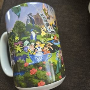 Colorful Disney theme park mug featuring Mickey and friends. Perfect for Disney fans.