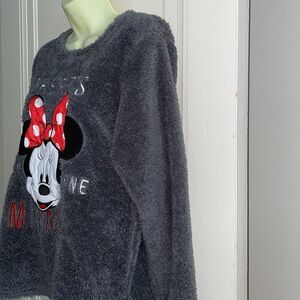 Disney “There’s Only One Minnie” gray fake fur sweatshirt