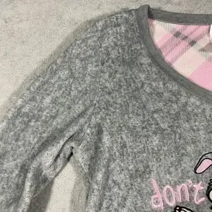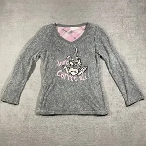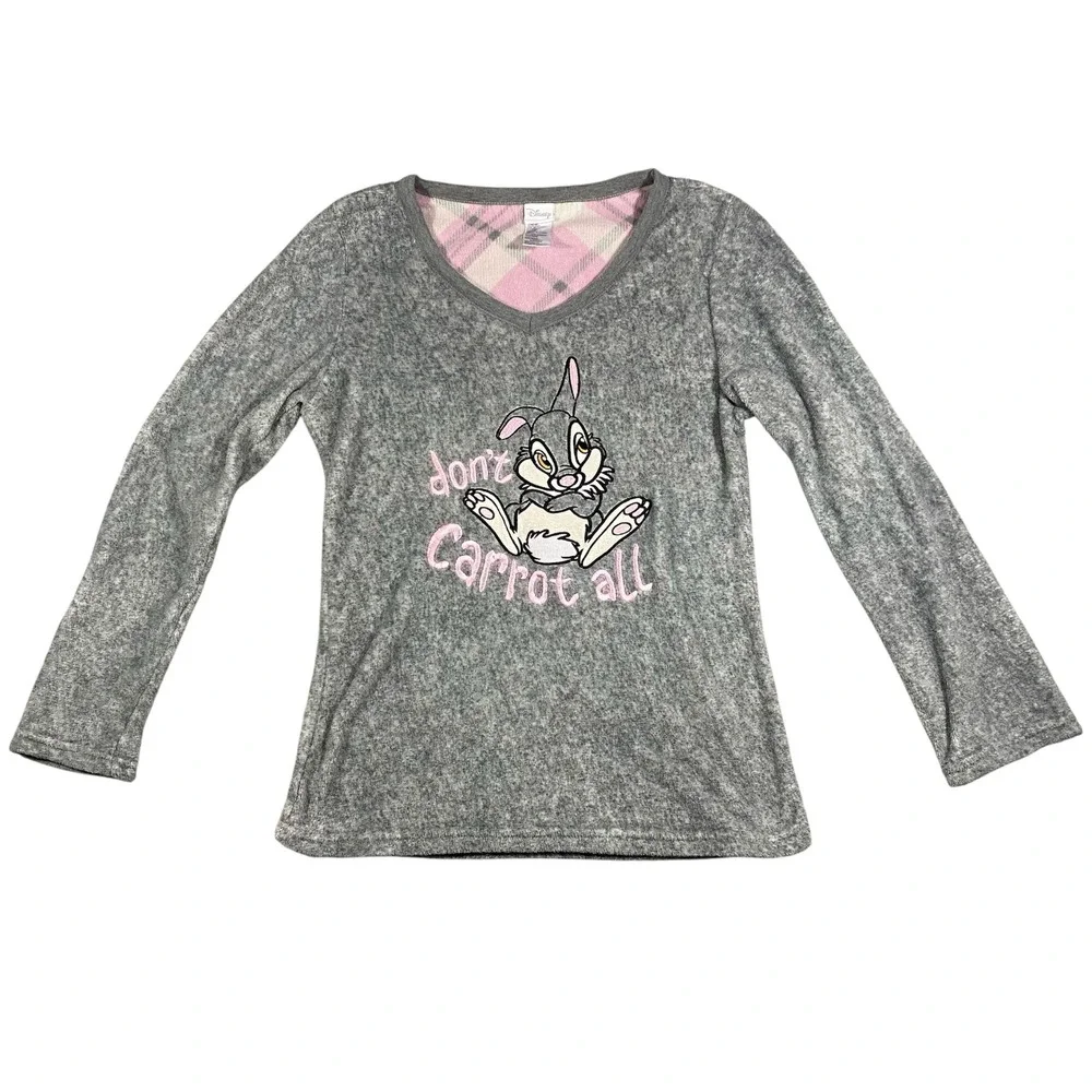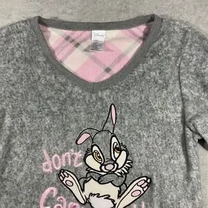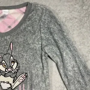 Disney Thumper Pajama Top Womens S Small Grey Long Sleeve Fleece Sleep Shirt