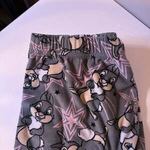 Super soft fleece pajama lounge pants featuring an all-over print of Disney's Thumper from Bambi. These comfortable pants are perfect for relaxing at home and are made from 100% polyester. The tag indicates a size Small (4-6). Excellent pre-owned condition with no visible flaws.