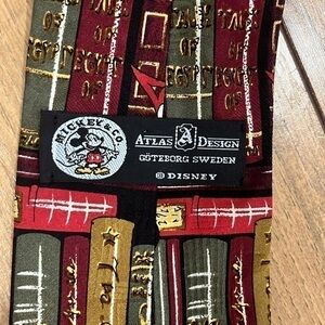 Disney Tie Mickey & Co Library Books Atlas Design Sweden Mickey Mouse 100% Silk