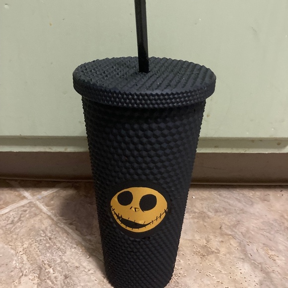 Disney Tim Burton's The Nightmare Before Christmas Matte Textured Tumbler Cup with Straw featuring Jack Skellington character.