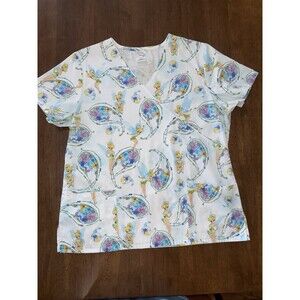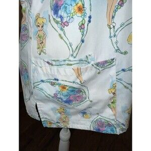 Disney Tinker Bell Scrub Top Women’s L Large White V-Neck Nurse Uniform Pockets