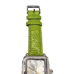Disney Tinkerbell Accutime Watch TK1022 7" Green Faux Leather Band Silver Tone