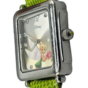 Disney Tinkerbell Accutime Watch TK1022 features a charming Tinkerbell design on a 7" green faux leather band with a silver-tone case.