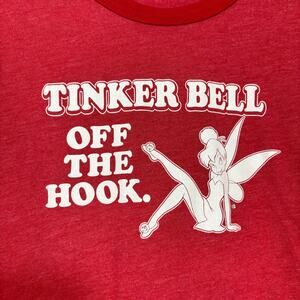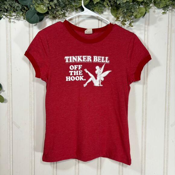Disney Tinkerbell T Shirt SMALL Red "Off the Hook" Casual Preppy Peter Pan