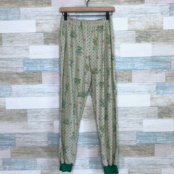 Disney Tinkerbell Thermal Jogger Pajama Pants Green Yellow Womens Medium 8 10