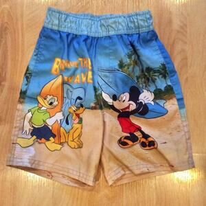 Disney Mickey Mouse and friends surfs up Size 24M swim trunks with matching top. In excellent condition from a smoke free home.