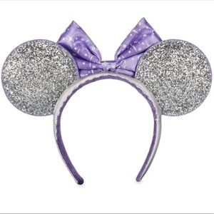 Tomorrow's dreams dare to come true when wearing this dazzling Disney Ear Headband adorned with futuristic EAR-idescent fabric and a shimmering purple bow featuring stars and polka dots.