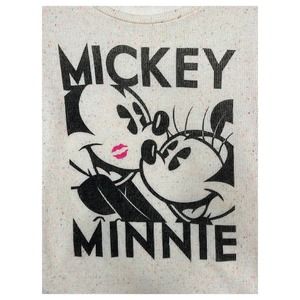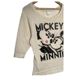 Disney Top Womens M Knit Confetti Mickey Mouse Minnie Graphic Lightweight Cream