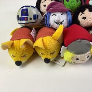 The product is a lot of 14 Disney Tsum Tsum mini plush toys, featuring characters from Disney, Marvel, and other Disney franchises. Each plush toy is a Disney Tsum Tsum mini, a popular collectible from the Disneyana series. The lot includes Disney/Marvel and other beloved Disney characters, making it a must-have for fans and collectors alike. These plush toys are brand new with tags and are sure to bring joy to anyone who loves Disney and Tsum Tsums.