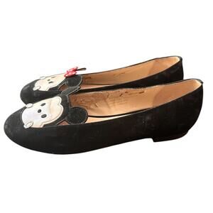 Adorable black suede-style flats featuring embroidered Tsum Tsum Minnie and Mickey Mouse faces. Part of the limited-edition Disney x Gracegift collection. Super cute and collectible for any Disney lover!