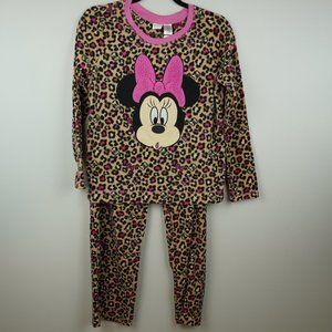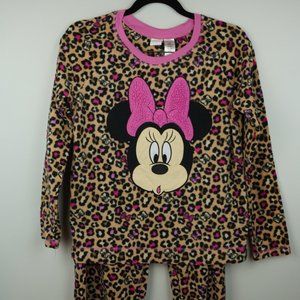 Disney Two Piece Fuzzy Animal Print Minnie‎ Pajama Set Size Large