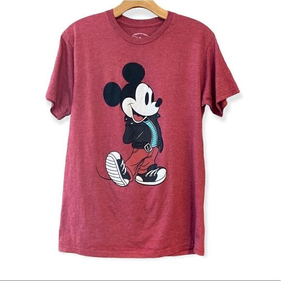 Disney Unisex Sz M Red Motorcycle Biker Mickey Mouse Short Sleeve Cotton T-Shirt