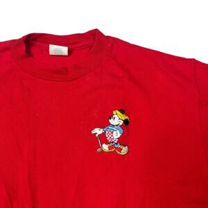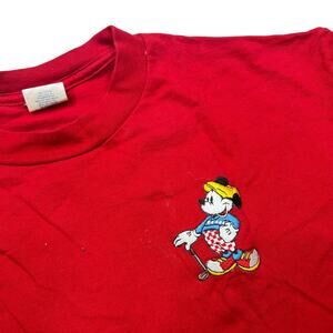 Disney VTG 90s Golf Mickey Embroidered Tee T-Shirt Velva Sheen Red