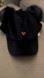 Excellent black velvet Disney hat with fluffy pom pom ears, gold Mickey, and gold adjustable clip.
