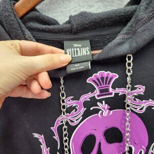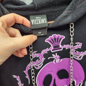 Disney Villains Black Hoodie With Pink Skull Graphic & Chain Detail