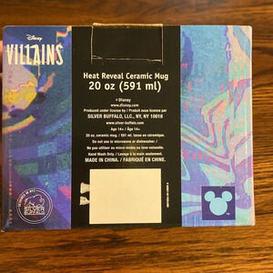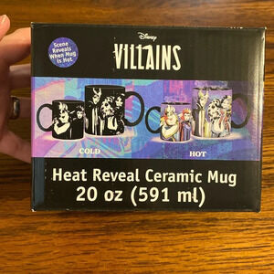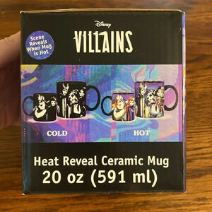 Disney Villains Heat Reveal Ceramic Mug. Ursula, the Evil Queen, Maleficent, & Cruella. Scene reveals when mug is hot. Not microwave or dishwasher safe.