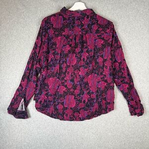 Disney Villians Womens Size 0 Large Button Front Shirt Red Black Long Sleeve