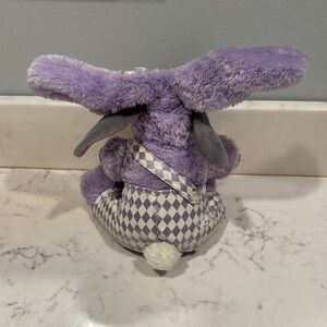This plush stuffed animal features a delightful combination of purple and gray hues, complete with long floppy ears and a soft, fuzzy texture. Its gentle expression and cuddly design make it a perfect companion for anyone who loves plush toys.