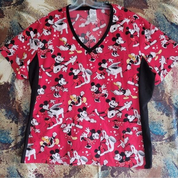 Disney Vintage Mickey, Minnie & Donald Musical 3 Pocket Nurse Scrub Top 3XL IN EXCELLENT Condition.