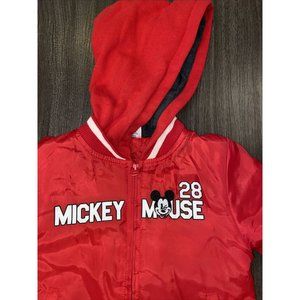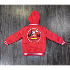 Disney Vintage Mickey Mouse UNISEX Varsity Jacket Hood Red White Stripes Sz 3T