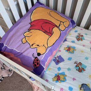 Disney | Vintage Winnie The Pooh Crib Sheet and Reversible Tigger Pillow Case