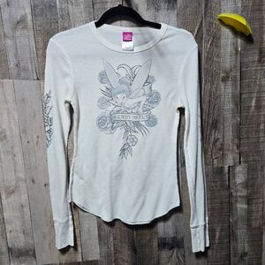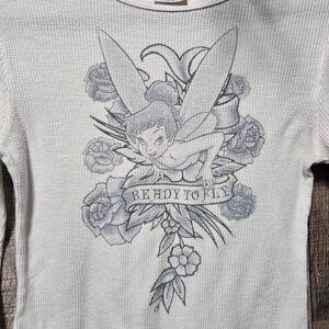 Disney Vintage Y2K White Waffle Knit Tinker Bell Graphic Top