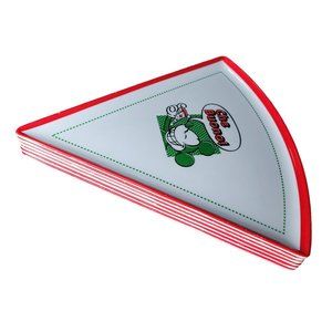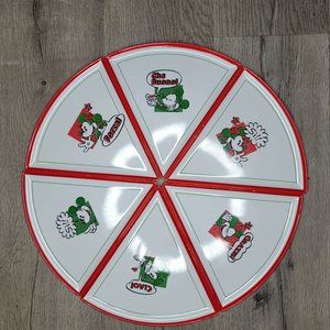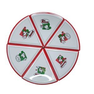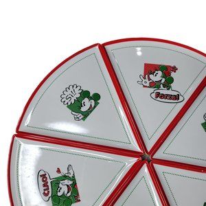 Indulge in the magic of Disney with this vintage Minnie and Mickey Mouse Italian word pizza plates. The full set of 6, in vibrant red and green colors, is made from durable plastic.