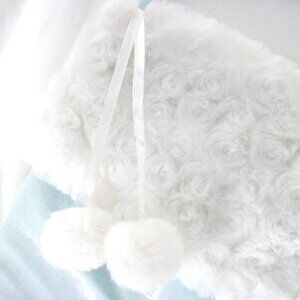 Disney WINNIE THE POOH Snow Angel TIGGER Light Blue Velvet Large CHRISTMAS STOCKING with Pom Poms
