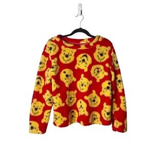 Disney WINNIE the POOH Sherpa Pajama Top Women Lounge Top Size Small Fleece