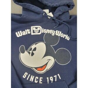 Disney Walt Disney World Hoodie Mens Medium Navy Blue Mickey Mouse Since 1971 Pullover