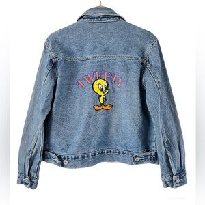 Disney Warner Bro Looney Tunes Embroidered Tweety denim jacket