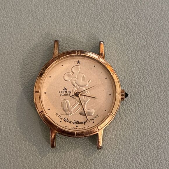 The Disney Watch Vintage Mickey Mouse Lorus Gold Coin Dial V811-1400 is a collectible timepiece featuring the beloved Mickey Mouse character. With a gold coin dial and a brand like Disney, this watch is a unique and nostalgic piece for fans and collectors of Disneyana. The watch also boasts a new battery, ensuring it keeps accurate time and is ready to be worn or displayed with pride.